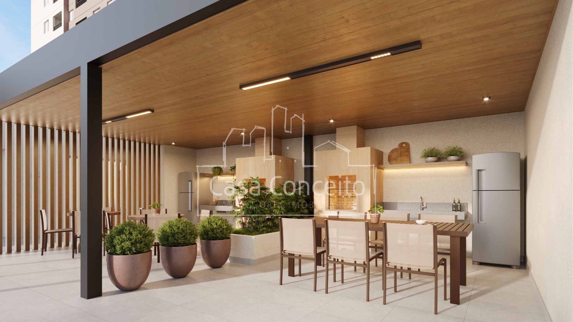 A ampla área de lazer é uma verdadeira extensão do seu apartamento, envolvida pela natureza. É como ter um jardim particular para curtir com a família, relaxar ou brincar com as crianças ao ar livre.