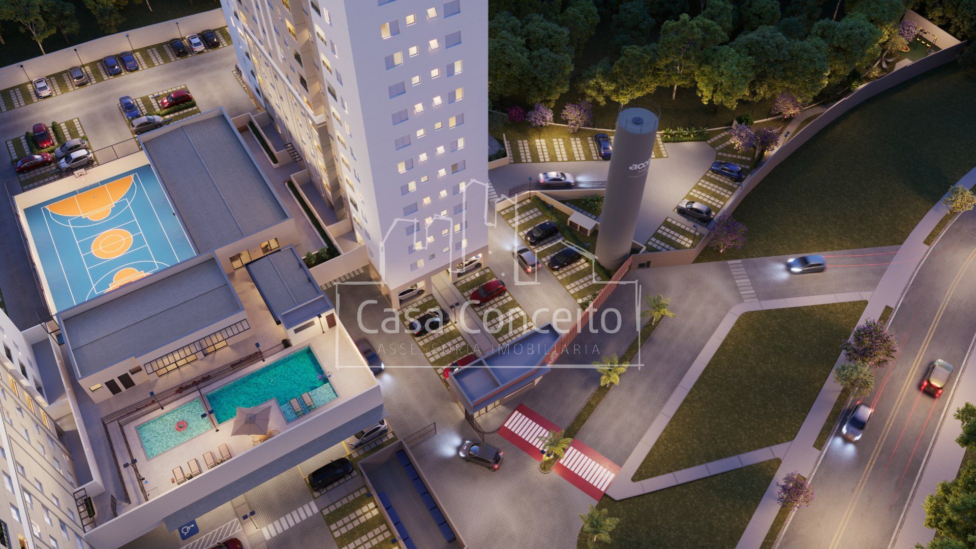 O condomínio garante segurança e privacidade com portaria 24h, acesso de pedestre com clausura e porte-cochère nos acessos do empreendimento. A localização em uma região residencial consolidada e o maior recuo em relação à via existente reforçam a tranquilidade. A infraestrutura ainda conta com um espaço delivery para maior comodidade.