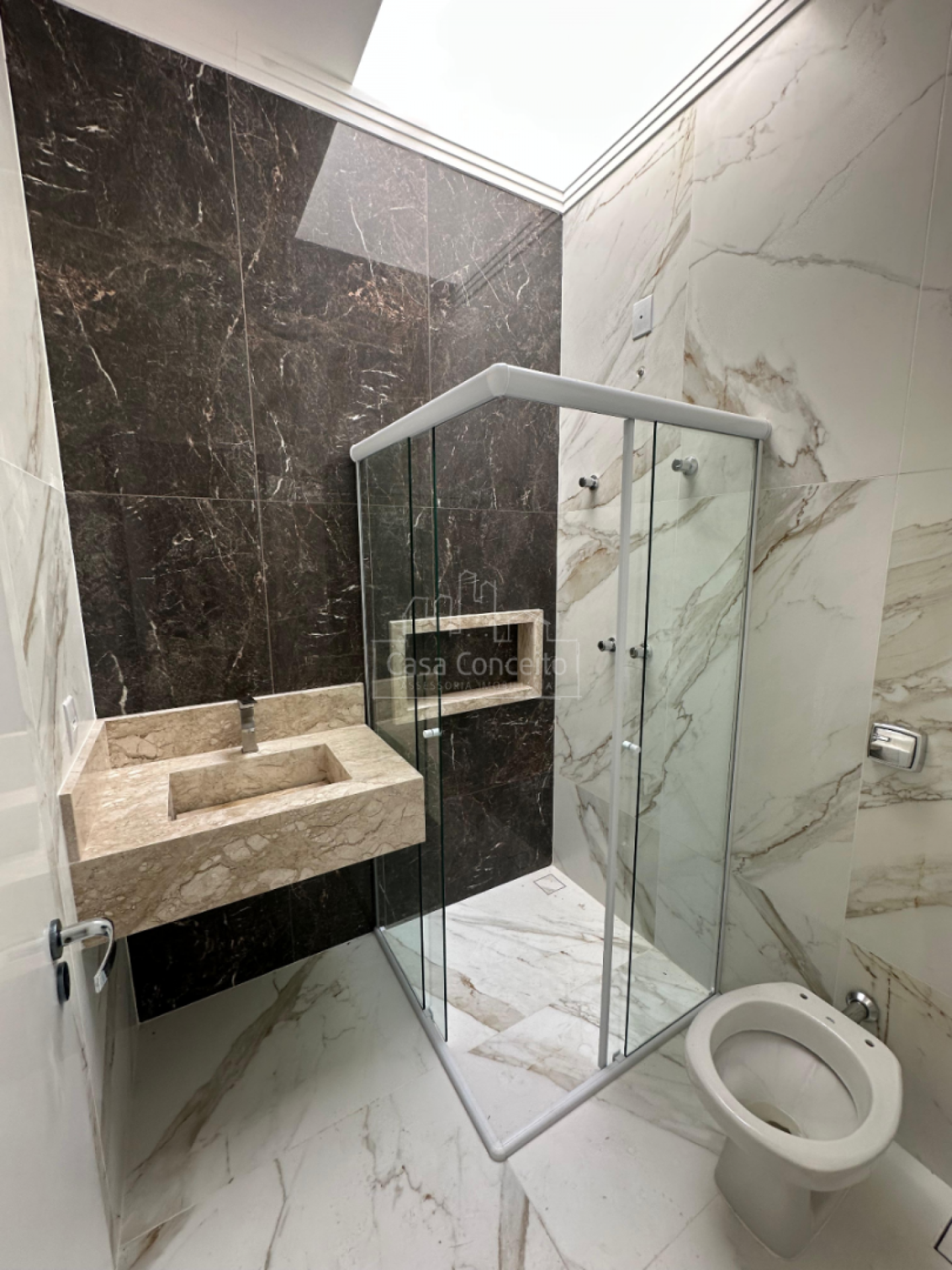 ▸ Banheiro social com box de vidro temperado
