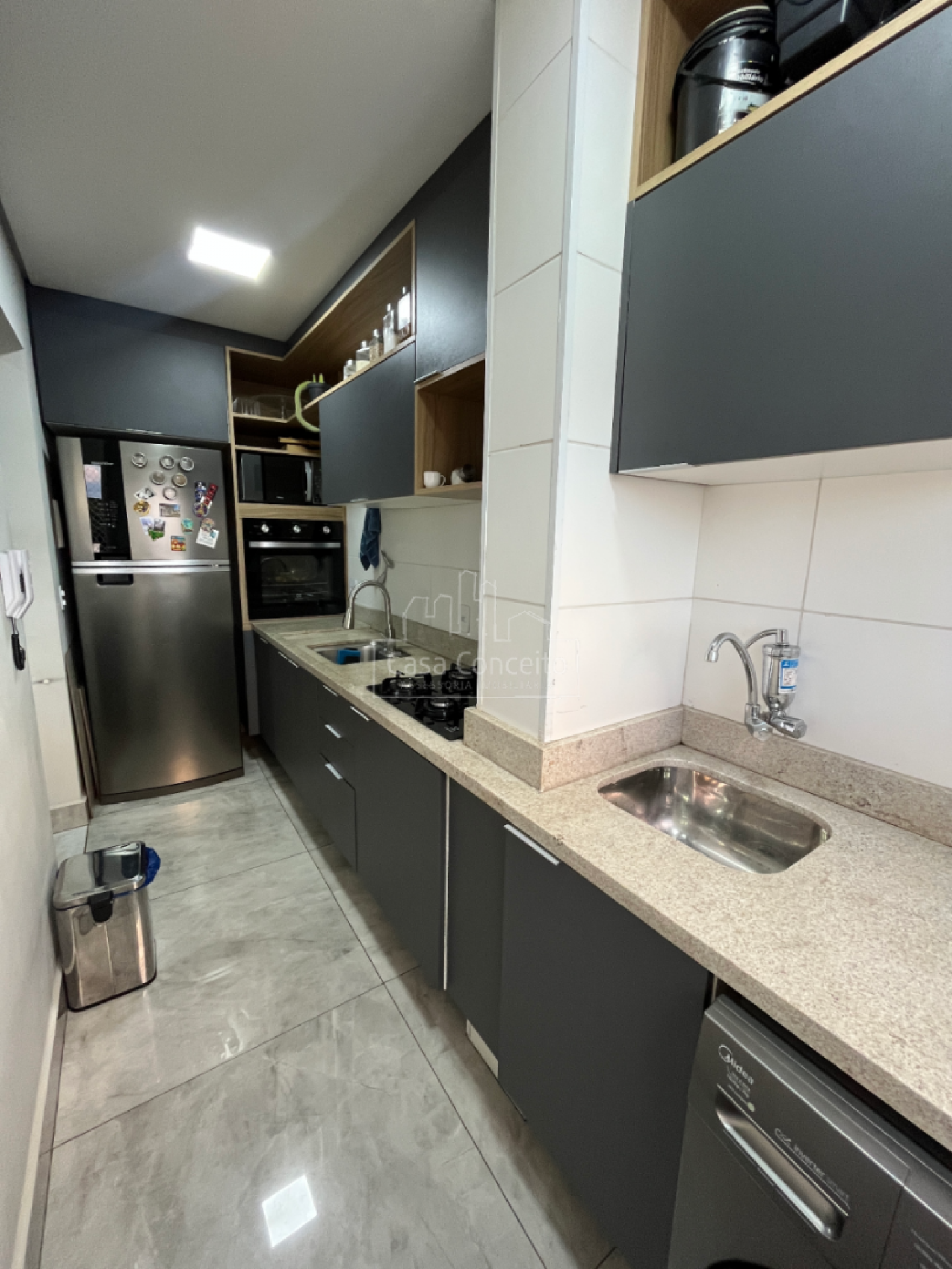 ✔ Cozinha moderna com bancada de granito e armários planejados – perfeita para preparar refeições gourmet.