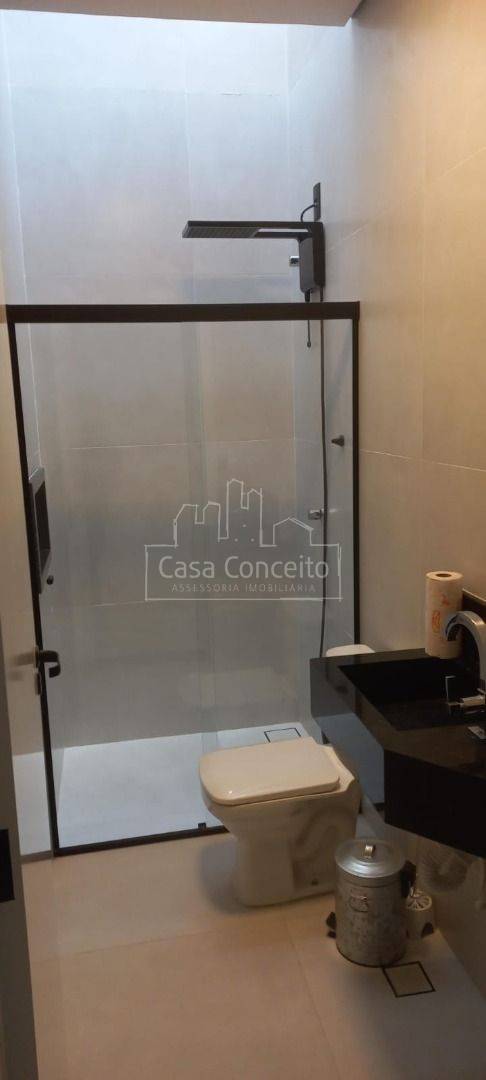 Casa a venda em condomínio fechado, com todos os ambientes em porcelanato, aquecedor elétrico, torneiras mano comando, encanamento para triturador de lixo, banheiros com chuveiro, box e pias de mármore, portas laqueadas, cozinha, lavanderia e quartos com portas blindex.Frente com textura em grafiato, garagens para 2 carros (coberta e descoberta), jardim, quintal com encanamento e pontos eletricos para piscina.Bairro estruturado na Zona Oeste, próximo ao Santo Supermercados, Habbib´s, bancos entre outros.